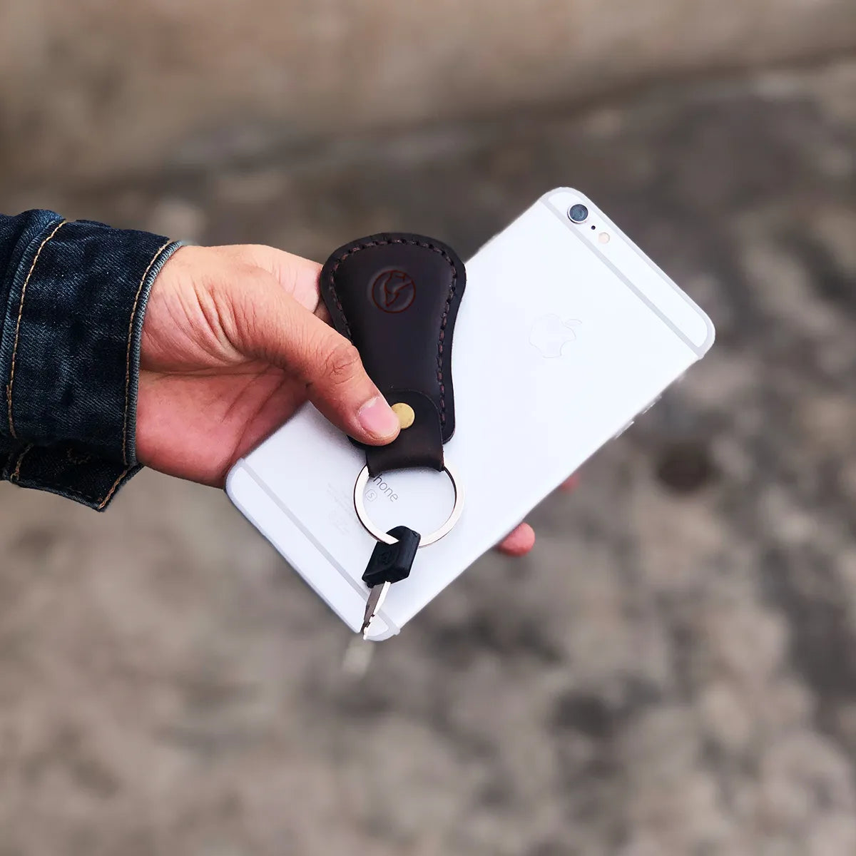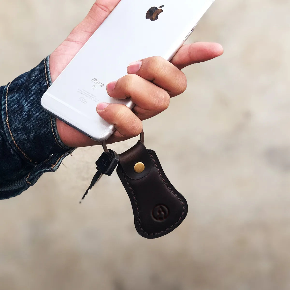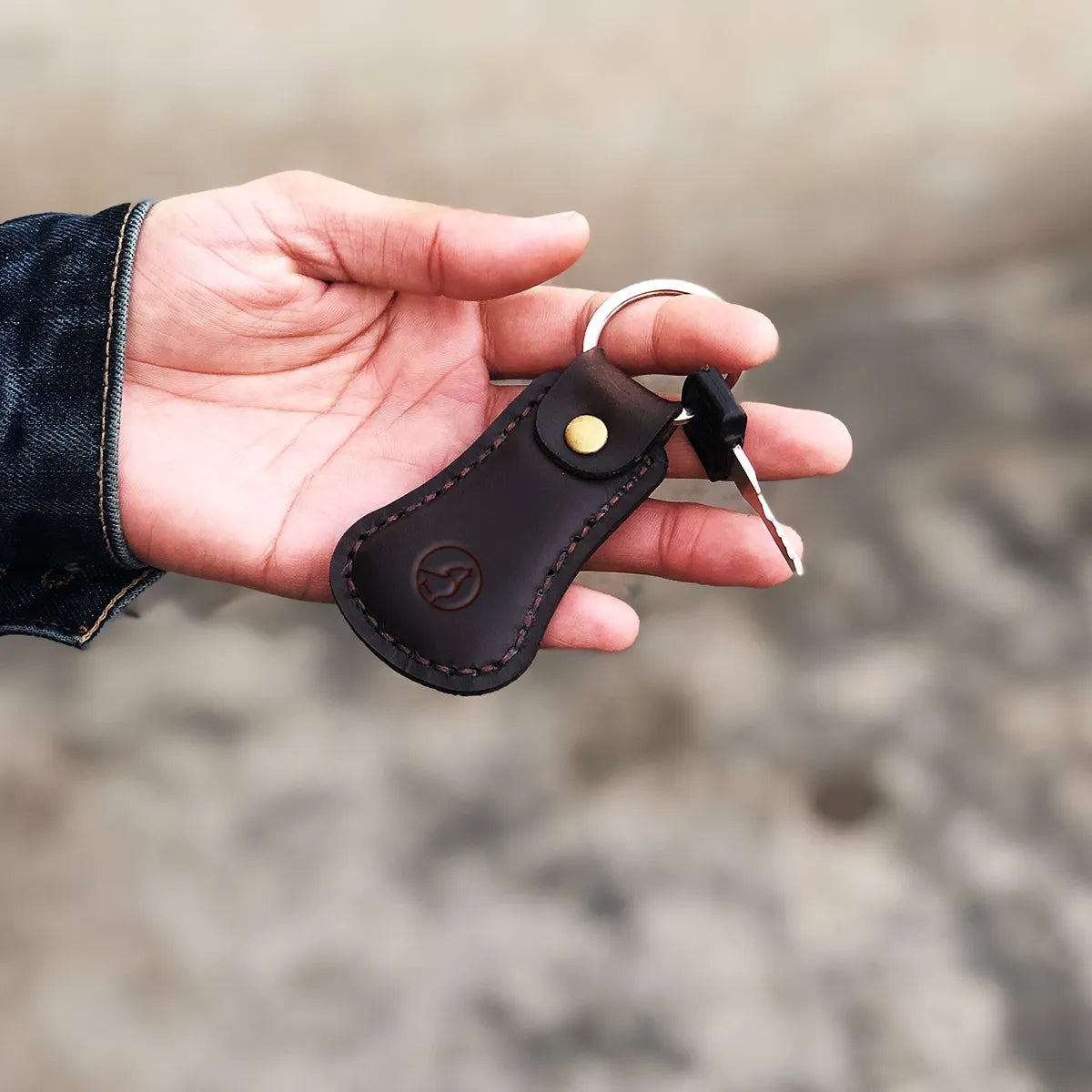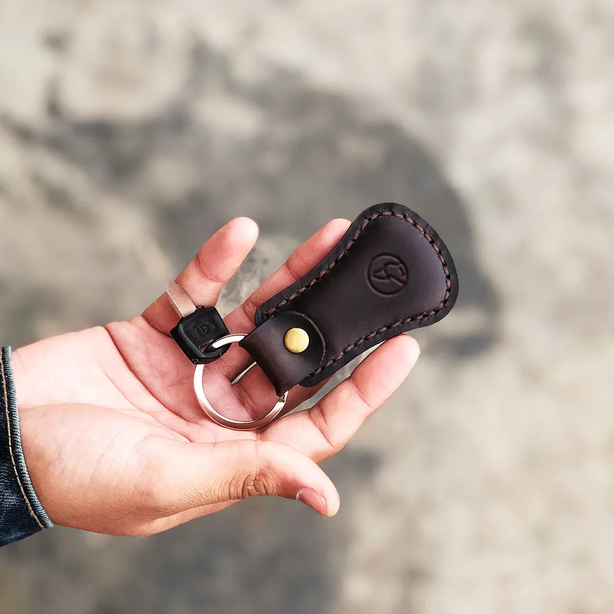 The Bell Shaped: A Hand-Stitch Leather Keychain - Coffee Color