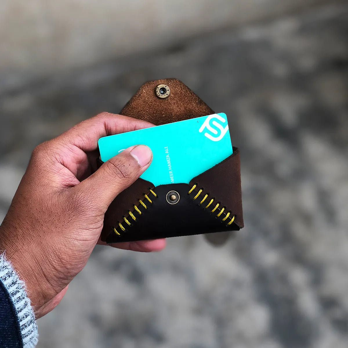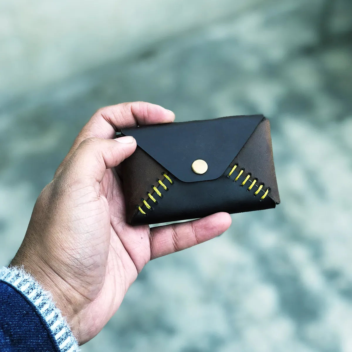 Minimalist Hand Stitch Card Pouch - Brown Color
